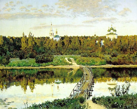 В 1644 году на левом берегу Волги напротив Юрьевца был построен красивейший Кривоезерский монастырь, впоследствии воспетый великим художником И. И. Левитаном в двух картинах "Тихая обитель» и «Вечерний звон». Сегодня Кривоезерского монастыря нет, его скрыло под своими водами, как и дикие заволжские окрестности, Юрьевецкое море. Сейчас на его месте возвышается 12-метровый крест, установленный монахами Свято-Николо-Шартомского монастыря.