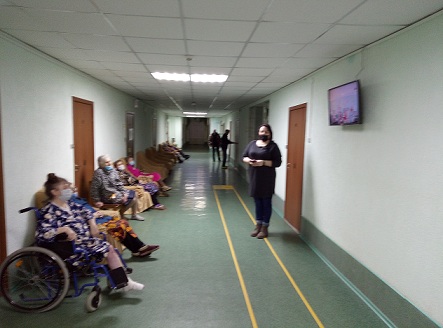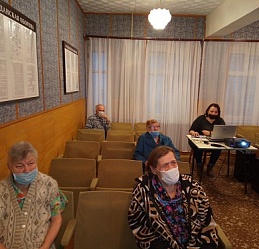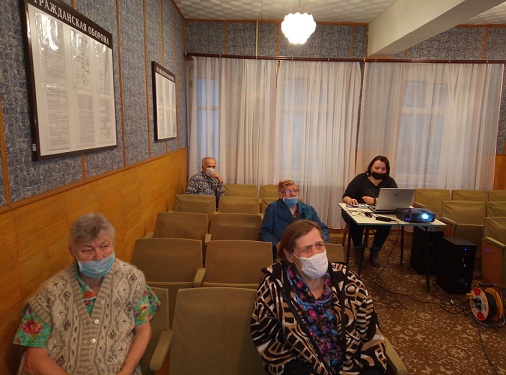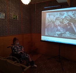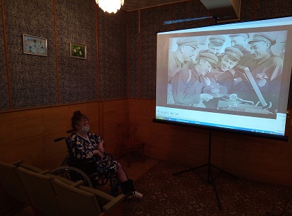 В отделении временного проживания граждан пожилого возраста и инвалидов Фурмановского центра социального обслуживания населения продолжается демонстрация виртуальных мероприятий, подготовленных сотрудниками библиотеки. Ветераны с соблюдением необходимых санитарно-гигиенических требований в период карантинных мер стали участниками виртуального киночаса "Песни, открытые сердцу" по музыке кино 50-70-х годов годов прошлого столетия и посмотрели сюжет "За дальнею околицей" виртуального проекта " Довоенные песни Победы".