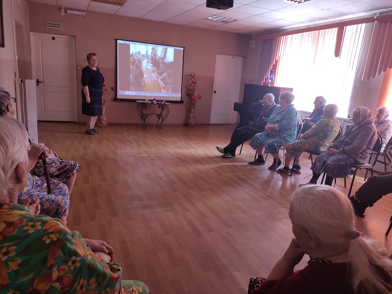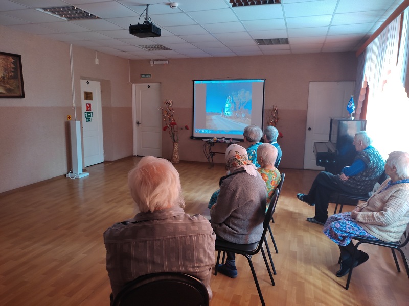 В рамках Всероссийской акции поддержки чтения «Библиодень-2022: И даже во тьме найду свет!» в отделении временного проживания граждан пожилого возраста и инвалидов Наволокского комплексного центра социального обслуживания населения 26 мая состоялся виртуальный вечер-путешествие «Холуй – село самоцвет».
