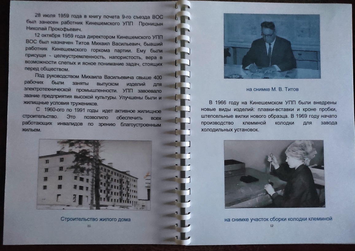 Надеемся, что многим членам ВОС, особенно молодому поколению, будет интересно узнать, с чего начиналось создание общества слепых от ячейки до современного предприятия и местной организации, какие люди в разное время возглавляли Кинешемскую МО ВОС и Кинешемское предприятие УПП ВОС, какое велось строительство жилья, какими достижениями в культуре и спорте могли гордиться инвалиды по зрению и чем в настоящее время живет местная организация.