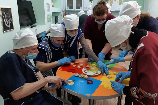 Закончилось мероприятие чаепитием, на котором среди угощений было печенье, которое инвалиды самостоятельно испекли на мастер-классе.