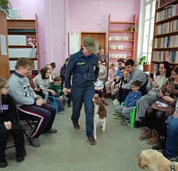 Встреча началась с беседы-общения о военных профессиях собак в годы Великой Отечественной войны, об уникальной собаке-минёре Джульбарсе, награжденной медалью «За боевые заслуги». Четвероногие верные друзья человека продолжают нести службу и в мирное время, как бордер-колли Наоми с кинологом ГУ МЧС России Еленой Никитиной.