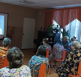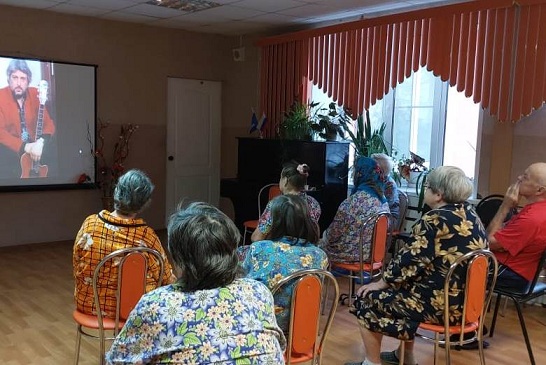 В отделении временного проживания граждан пожилого возраста и инвалидов Наволокского комплексного центра социального обслуживания населения в рамках межведомственного взаимодействия с Ивановской областной специальной библиотекой для слепых состоялся просмотр музыкального часа «На земле живёт любовь», посвященного творчеству Вячеслава Добрынина.