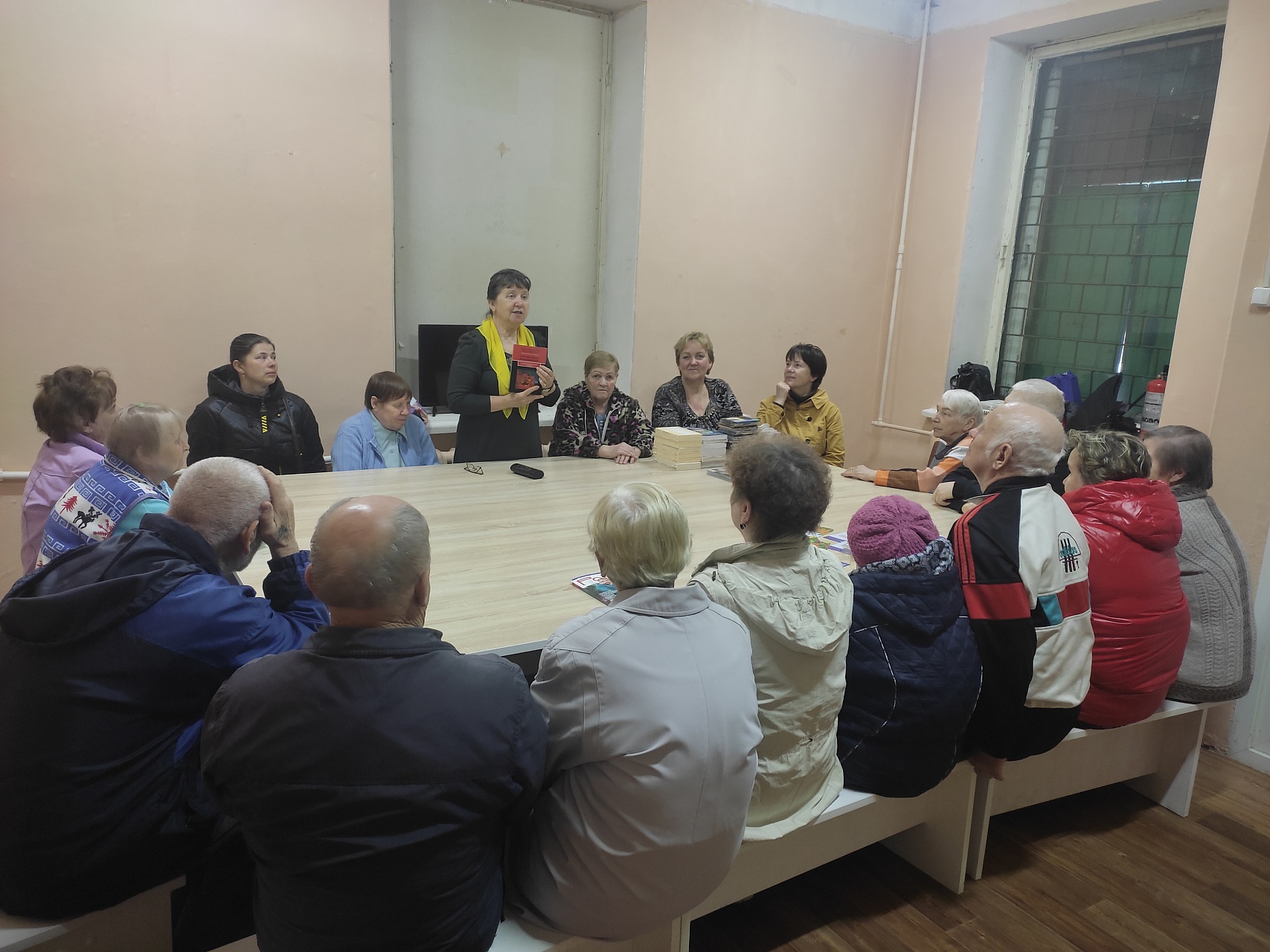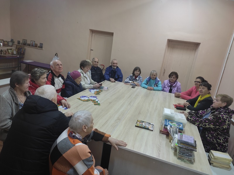 Выездной читальный зал для читателей Кинешемского филиала № 1, инвалидов по зрению, проживающих в микрорайоне Сокольники, состоялся в гостеприимном православном духовно-просветительском центре «Пересвет» 26 апреля. Читатели обменяли книги и встретились с членом Союза писателей России, руководителем духовно-просветительского центра Еленой Потехиной, которая представила новой краеведческий сборник «Святые земли Кинешемской».