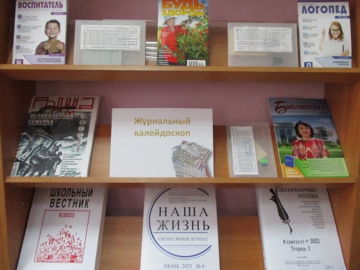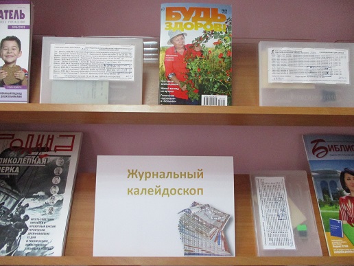 На выставке «Журнальный калейдоскоп» представлена часть журналов из фонда библиотеки различной тематики, в плоскопечатном, а также альтернативных форматах.