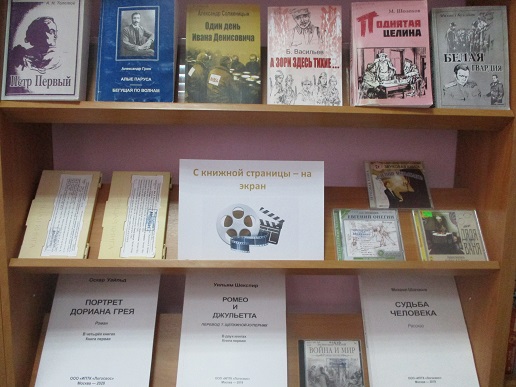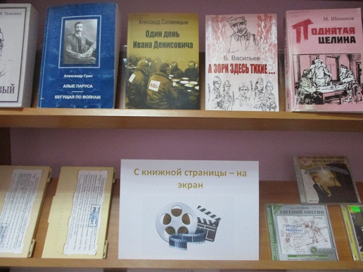 Ведь в сегодняшней жизни кинематограф — самая лучшая реклама книги. Надеемся, что выставка вдохновит читателей на просмотр известных фильмов и на чтение хороших книг! Смотреть любимые фильмы — удовольствие, а читать книги, на которых они основаны, приятно вдвойне. Книга открывает читателю огромный мир, ограниченный только его воображением. Читая произведение, мы получаем возможность познакомиться с героем настоящим, таким, каким его задумал автор. Экранизация позволяет посмотреть на знакомый сюжет глазами режиссера и сделать для себя множество открытий, заметить то, что раньше не привлекало внимания.