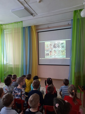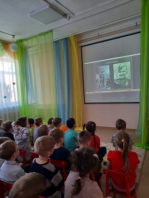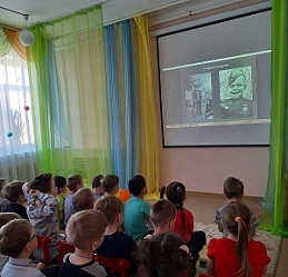 В детском саду компенсирующего вида № 61 (г. Иваново) состоялся просмотр познавательного библиоурока "Наши деды - славные победы" в раках подготовки к IV областному фестивалю детского творчества "Как хорошо на свете без войны". В доступной форме детям было рассказано о том, кто в разные периоды истории России защищал её от врагов; особое внимание было обращено на ратные подвиги детей и подростков в годы Великой Отечественной войны. Иллюстративный материал был представлен фрагментами из мультипликационных фильмов.