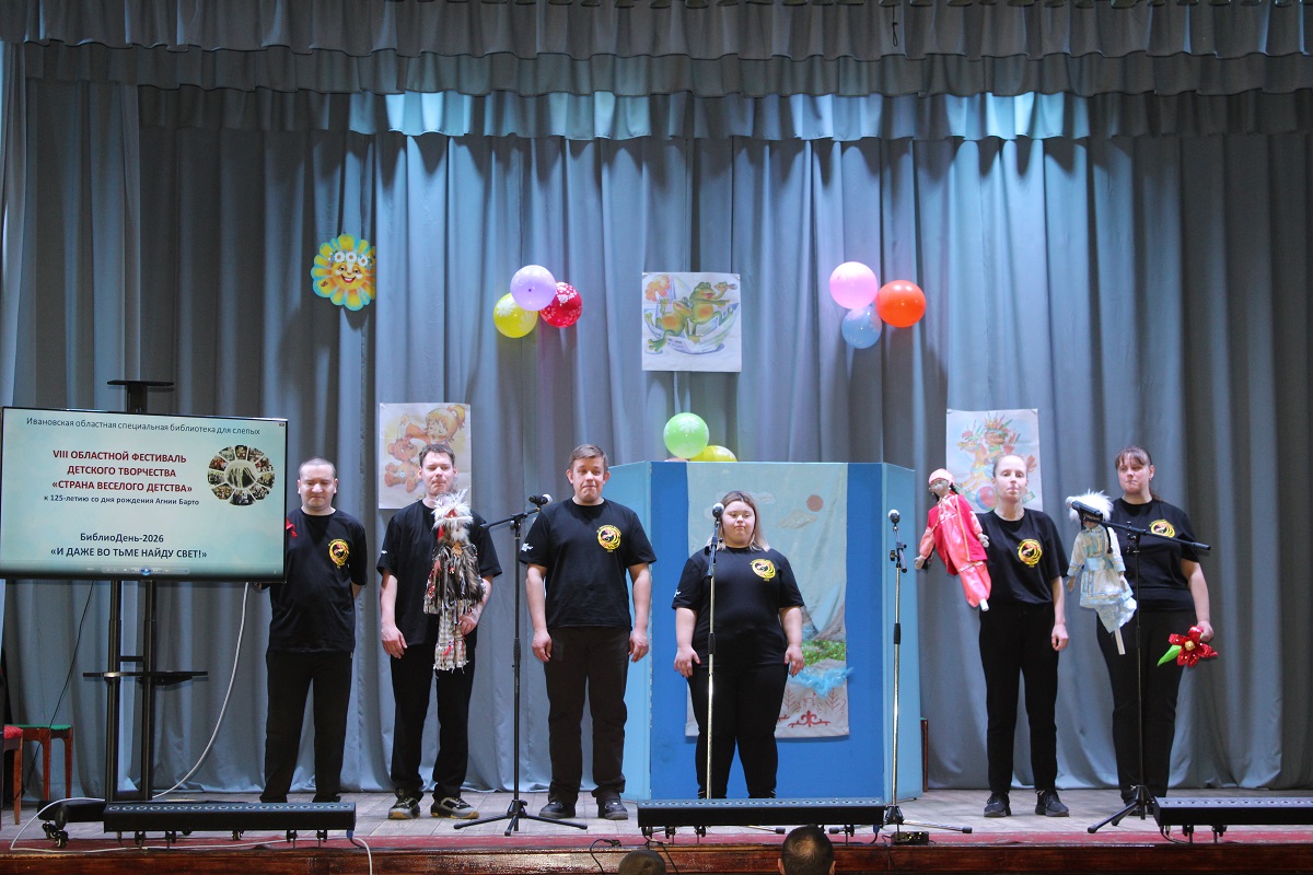 В рамках Всероссийской акции поддержки чтения «БиблиоДень-2026: И даже во тьме найду свет…» 17 апреля в актовом зале Дома культуры Ивановской областной организации ВОС состоялся детский праздник по итогам VIII областного фестиваля детского творчества «Страна весёлого детства», посвященный 125-летнему юбилею детской писательницы А. Л. Барто