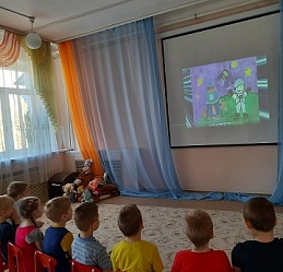 В детском саду компенсирующего вида № 61 (г. Иваново) состоялись просмотры виртуальных мероприятий, подготовленных библиотекой ко Дню космонавтики и авиации.