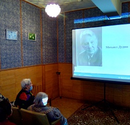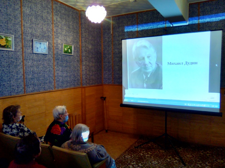 Поэтические строки Михаила Александровича Дудина, родившегося на ивановской земле в начале прошлого столетия, рассказ об основных мирных и военных событиях его жизненного пути; стихотворения, ставшие песнями, прозвучали в ходе просмотра виртуальной литературной гостиной "Останется любовь", состоявшегося в отделении временного проживания граждан пожилого возраста и инвалидов Фурмановского центра социального обслуживания.