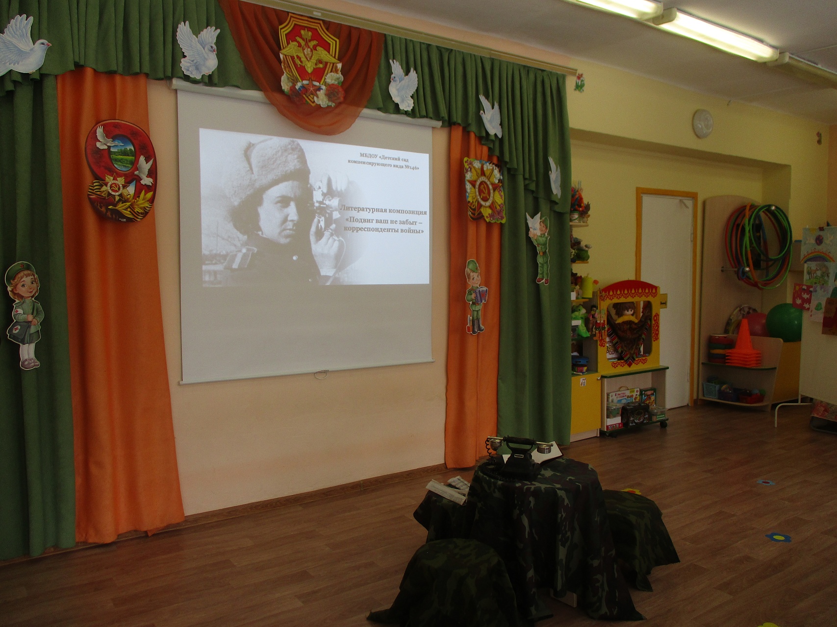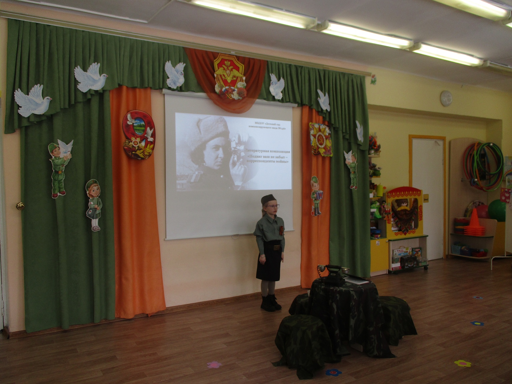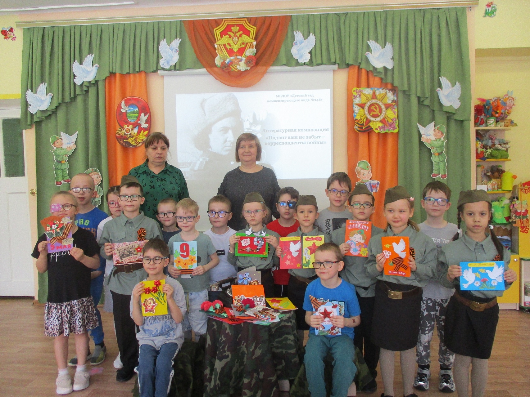 В детском саду компенсирующего вида № 146 (г. Иваново) 10 апреля состоялась концертная программа в рамках VII областного фестиваля детского творчества «Мир важней всего на свете!», в ходе которой воспитанники представили свои фестивальные работы. Трогательными были выставка детских рисунков, сценка «Подвиг ваш не забыт – корреспонденты войны», проникновенно прочитанные стихотворения о подвигах защитников Отечества. Все номера концертной программы сопровождались дружными аплодисментами. По окончании детский сад передал библиотеке поздравительные открытки с Днем Победы, подготовленные воспитанниками и родителями в рамках Благотворительной акции «Мир своими руками» (предыдущие открытки ко Дню защитника Отечества и Международному дню 8 Марта). Открытки будут переданы читателям библиотеки, ветеранам Великой Отечественной войны, труженикам тыла и представителям поколения «Дети войны».