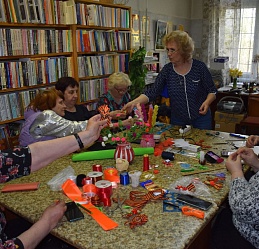 Шуйский филиал № 2 посетили члены клуба активного долголетия «Энергичные люди» Шуйского центра социального обслуживания населения, социального библиотечного партнёра. Для них и членов Шуйской МО ВОС ведущий библиотекарь Татьяна Виноградова провела мастер-класс по изготовлению броши «Георгиевская ленточка», рассказав о значении цвета этого важного символа мужества, стойкости и героизма нашего народа в годы Великой Отечественной войны. Участники мастер-класса под чутким руководством Татьяны Семёновны трудились над изготовлением броши из ленточек – символичного знака Дня Победы. Гости совершили также экскурсию по цехам предприятия ООО «Шетрик», где трудятся инвалиды по зрению и находится филиал ИОСБС; узнали историю создания и развития предприятия, ознакомились с процессом производства трикотажных изделий и новыми интересными коллекциями, получив представление о трудовой деятельности незрячих и слабовидящих тружеников предприятия.