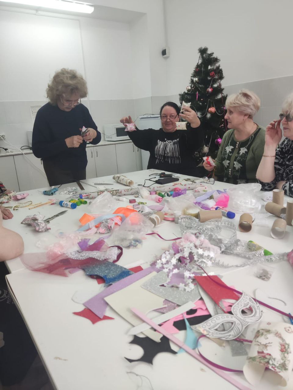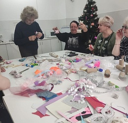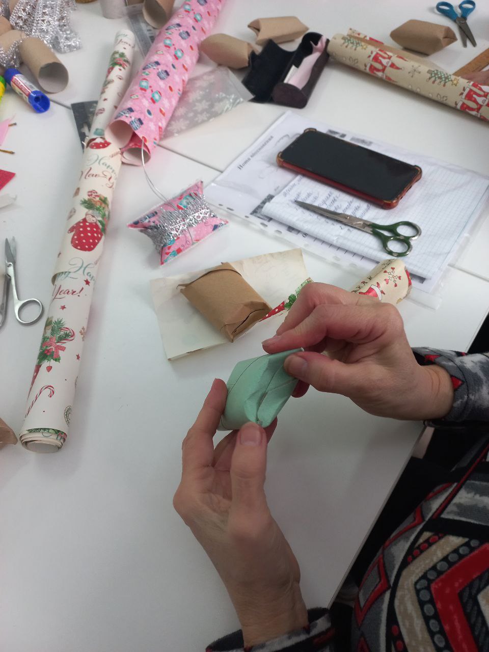 Для участников культурно-просветительного проекта «Нота вдохновения» Шуйского центра социального обслуживания населения ведущий библиотекарь Шуйского филиала № 2 Татьяна Виноградова провела мастер-класс по изготовлению елочной игрушки из картонных втулок, цветного фоамирана, тесьмы, пайеток, различных кабошонов и бусинок. Пошаговые инструкции и поддержка Татьяны Семёновны помогли участникам мастер-класса создать красивые игрушки, которые стали уникальными подарками для родных и близких в новогодние праздничные дни.