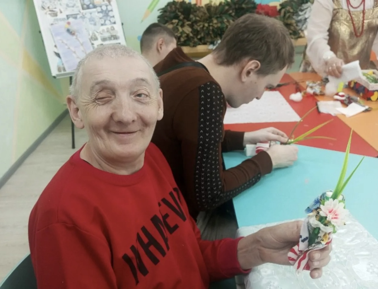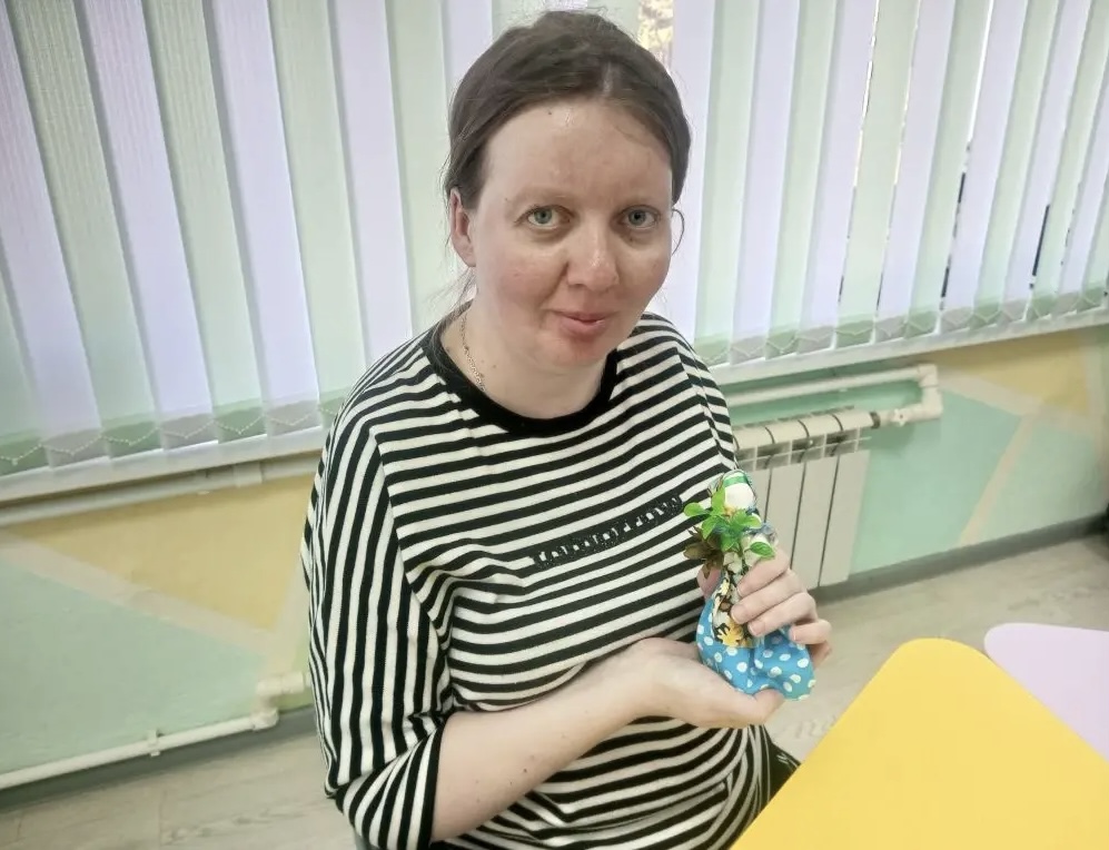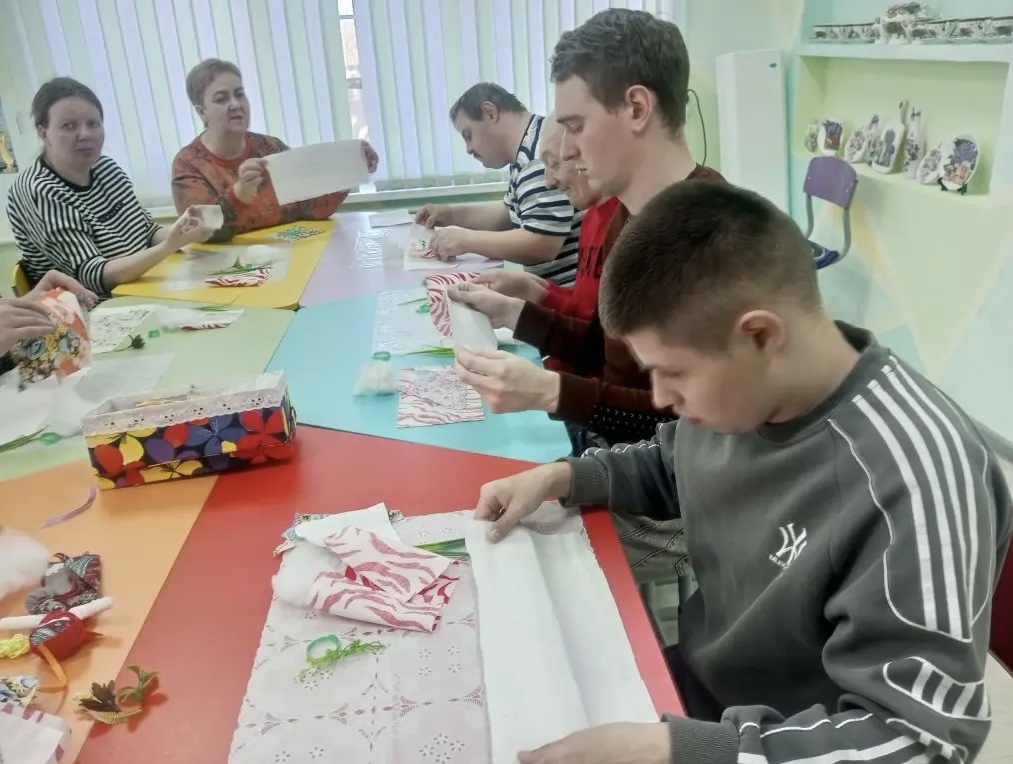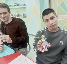 Молодые люди, посещающие отделение социальной реабилитации инвалидов Наволокского комплексного центра социального обслуживания населения, приняли участие в мастер-классе по изготовлению тряпичной куклы «Пасхальная».