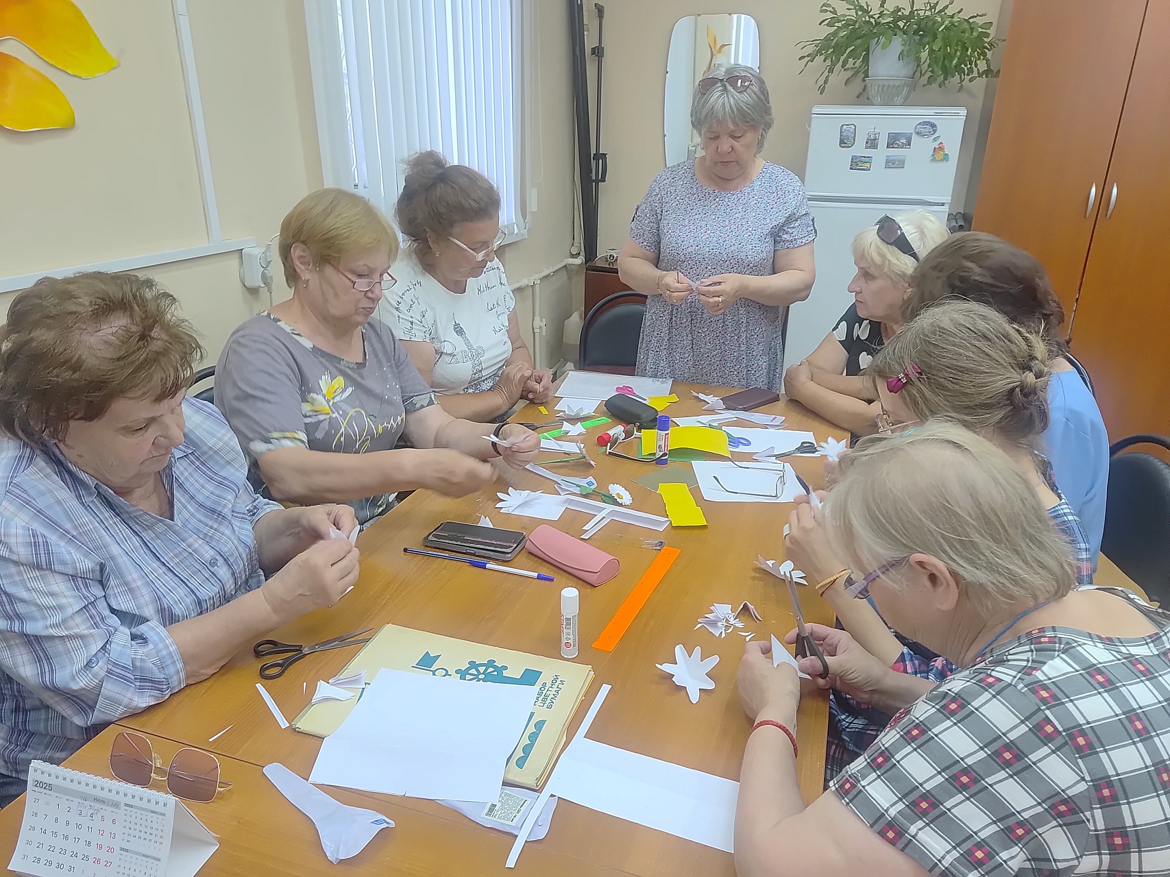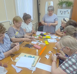 В Кинешемской МО ВОС для читателей Кинешемского филиала №1 и членов организации состоялся праздничный вечер «Тепло родного очага», открывшийся просмотром виртуальной тематической программы «Ромашка белая, лепесточки нежные», подготовленной отделом внестационарного обслуживания Ивановской областной специальной библиотеки для слепых к Дню семьи, любви и верности. В оживлённой беседе участники вечера делились своими размышлениями о составляющих семейного счастья, подбирали самые тёплые слова к слову «семья», вспоминали мудрые пословицы и поговорки, рассказывали о своих семейных традициях. В завершении вечера Наталья Кляузова провела мастер-класс по изготовлению ромашки, символа этого молодого российского праздника. В каждый лепесток своей ромашки восовцы вкладывали частичку своей души, надеясь, что созданные ими ромашки принесут в их дома ещё больше любви и взаимопонимания.