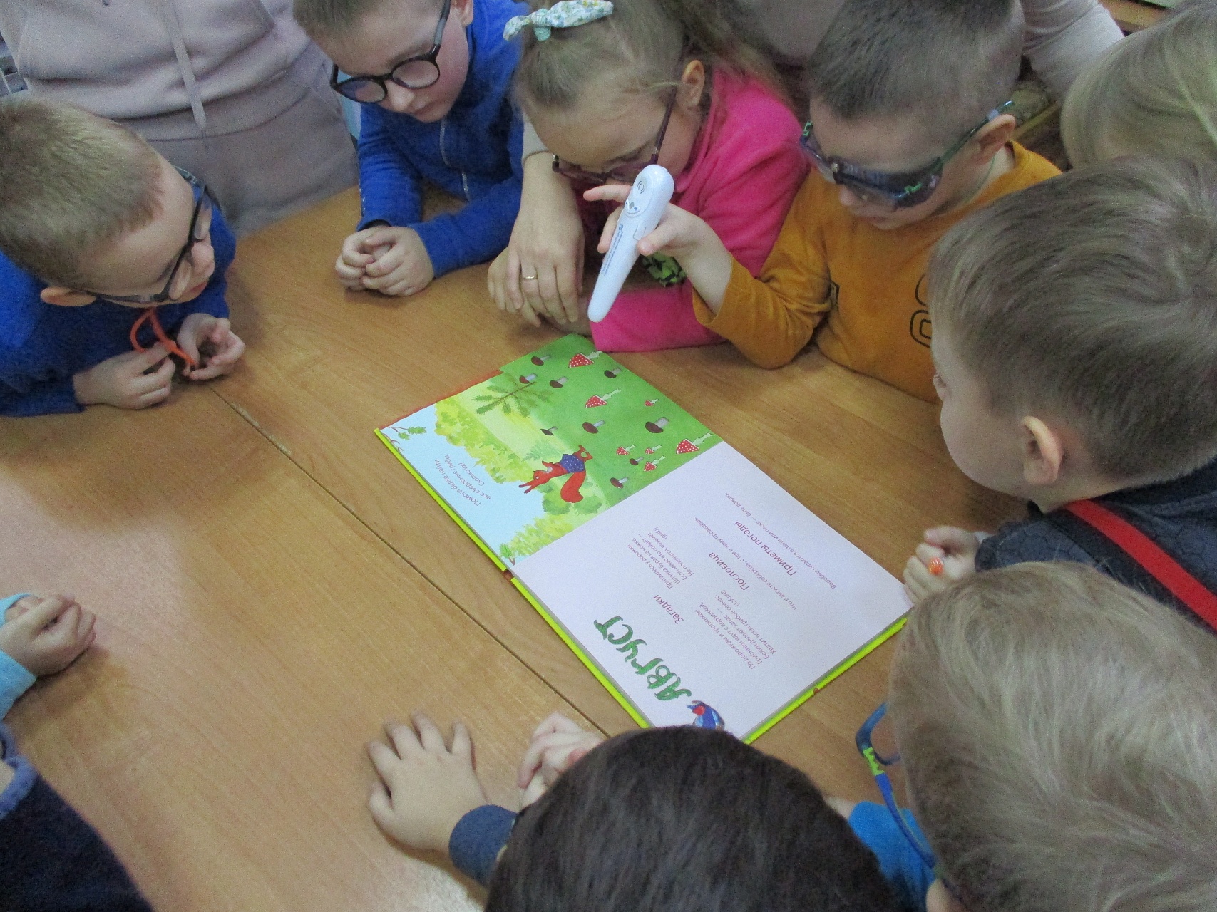 В библиотеку 14 ноября в гости к синичке Зиньке, главному персонажу книжного издания «Синичкин календарь» (серия «Волшебный карандаш») Благотворительного фонда «Книжки для маленьких слепых детей» пришли воспитанники подготовительной группы «Солнышко» детского сада компенсирующего вида № 146.