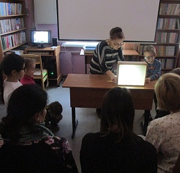 Русскую народную сказку «Репка» в рамках социально-реабилитационного проекта «Учимся видеть и творить прекрасное» разыграли в театре теней воспитанники старшей группы детского сада компенсирующего вида № 146. Спектаклю предшествовало общение с читающей машиной SARA, задавшей детям загадки о русских народных сказках; юные артисты успешно справились с заданием «говорящего» библиотечного жителя. Прежде, чем прозвенел театральный звонок, дети оживили в памяти действия сказки, посмотрев черно-белый мультипликационный фильм «Репка» 1936 года выпуска. И вот распределены роли, состоялась репетиция и начался спектакль с активным участием зрителей – педагогов детского сада и сотрудников библиотеки. Старание артистов-дебютантов было вознаграждено аплодисментами. Гости ознакомились и экспонатами будущей выставки - портретами собак-проводников незрячих читателей. Таким необычным, насыщенным было очередное посещение библиотеки детей и педагогов коррекционного учреждения, многолетнего социального партнёра.
