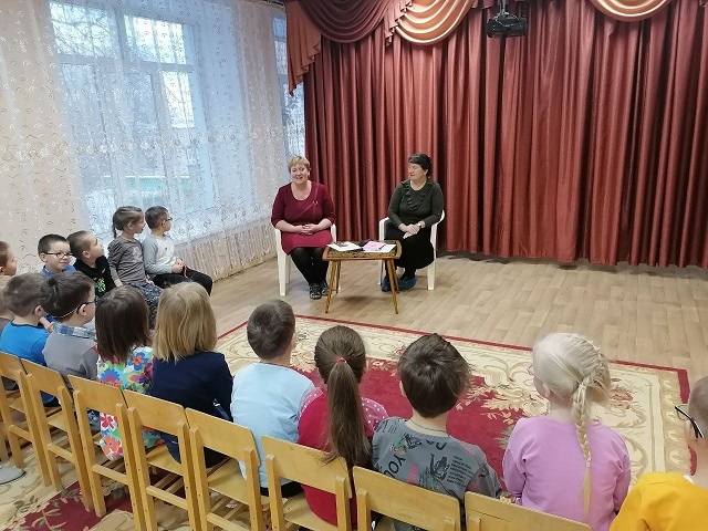 Елена Александровна совершила с ребятами увлекательное путешествие по страницам своих книг: «Мама расскажи сказку», «Мамины сказки – лучшее лекарство», «Где в лесу растут иголки». Дети с удовольствием прослушали сказку «Катина тарелочка» и поразмышляли о добре и зле; отгадывали загадки, слушали стихи и песни в исполнении автора.