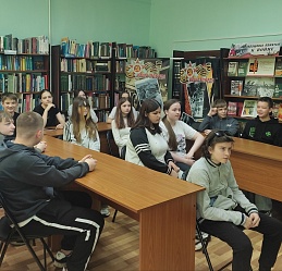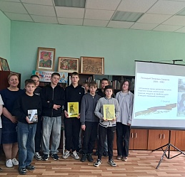 Ведущий библиотекарь Кинешемского филиала №1 Марина Горбачева приняла участие в уроке памяти «Подвигом славны твои земляки», состоявшемся 18 апреля в библиотеке – филиале №2 МУ КГЦБС для учащихся 7 класса школы №10.