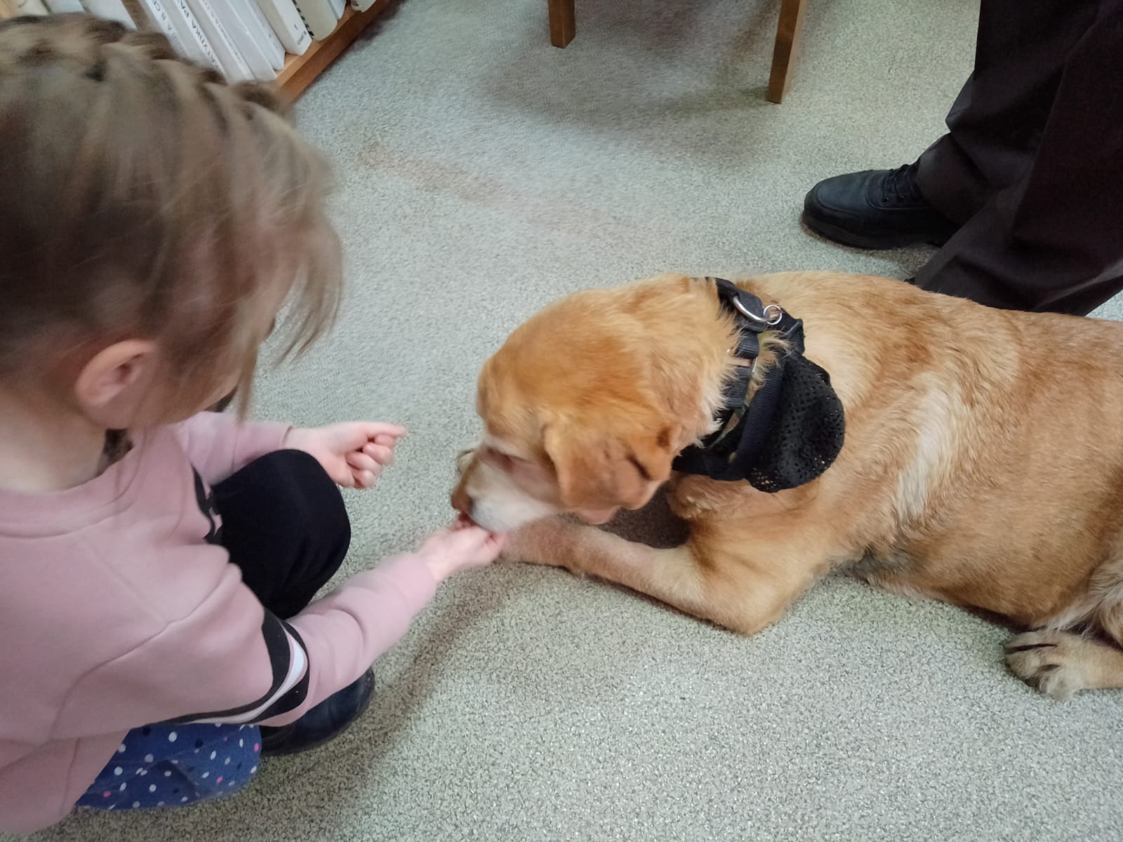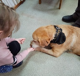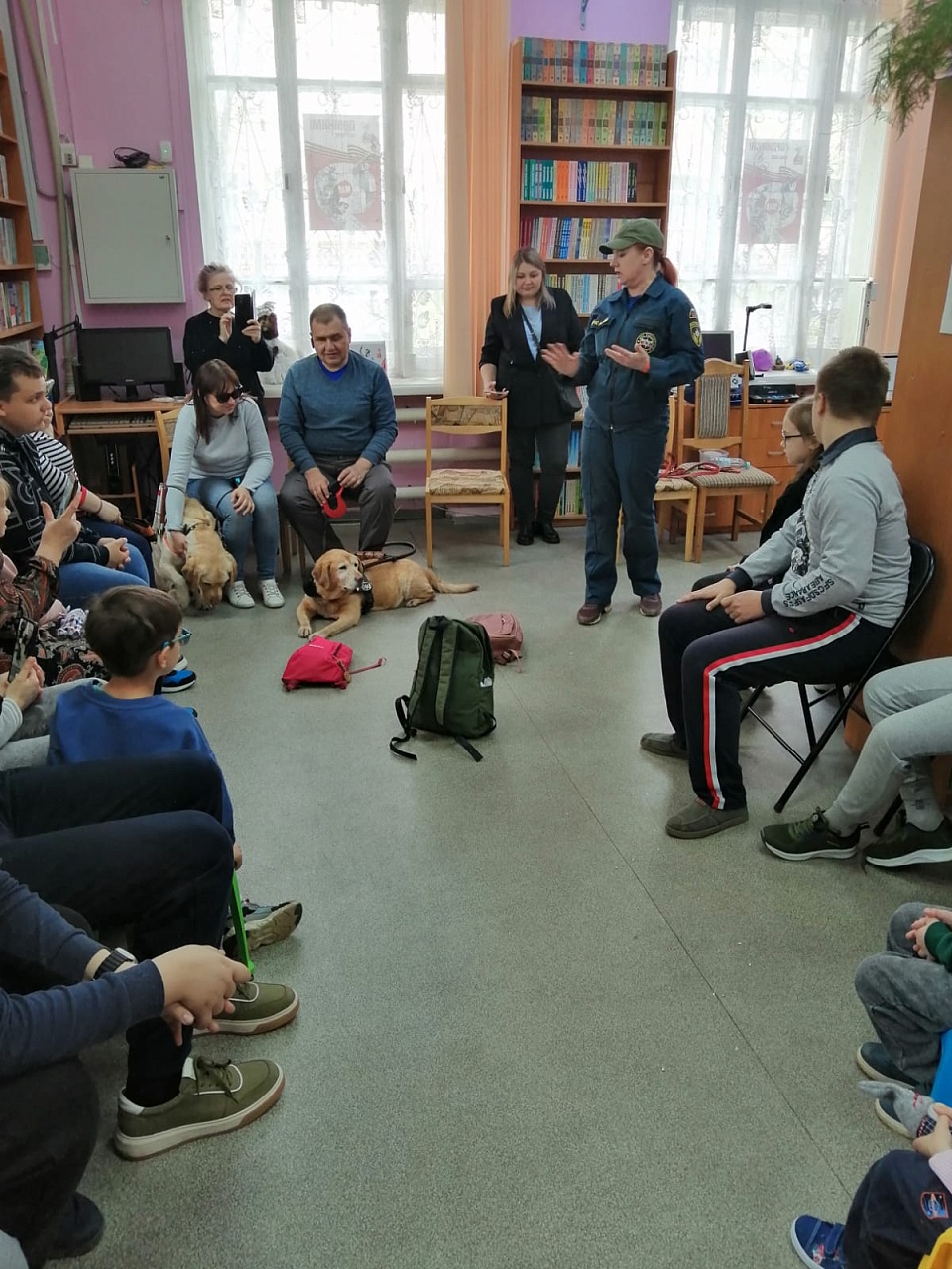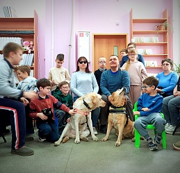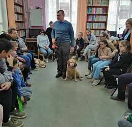 В рамках Всероссийской акции поддержки чтения «БиблиоДень-2025: И даже во тьме найду свет» 26 апреля состоялась тематическая встреча «Свои герои- военная и мирная служба четвероногих друзей человека». Участниками встречи стали дети-инвалиды по зрению, члены семейного клуба «Родительский лицей» и их родители; посетители отделения реабилитации и абилитации детей-инвалидов Центра социальной помощи семье и детям «На Московской». В гости пришли незрячие владельцы собак-проводников Светлана Каретина (руководитель клуба «Вектор»), Дмитрий Зарипов и кинолог Елена Никитина со своими четвероногими друзьями.